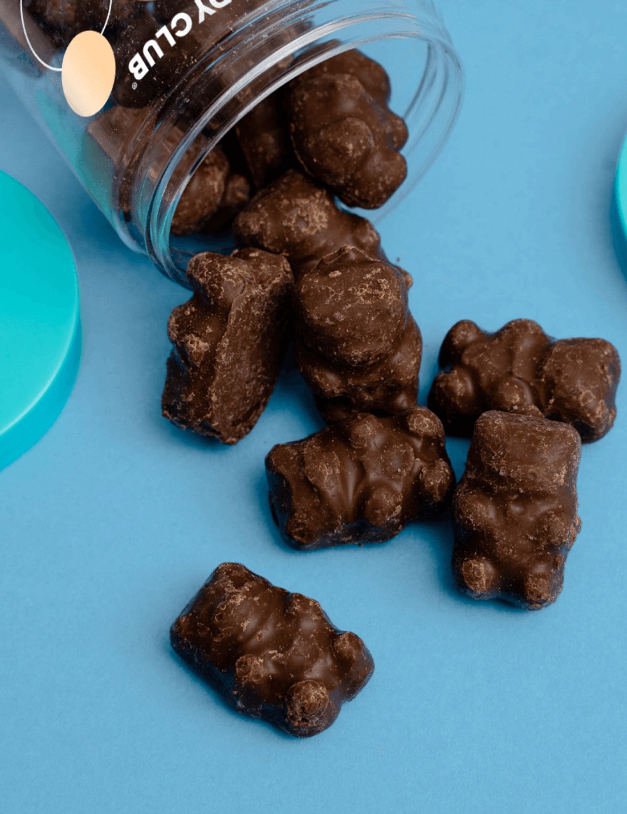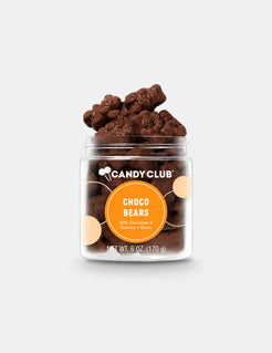 Colorful gummy bears dipped in silky milk chocolate—flavors include apricot, strawberry, strawberry-banana, marshmallow, and orange, delivering a deliciously fun and indulgent treat