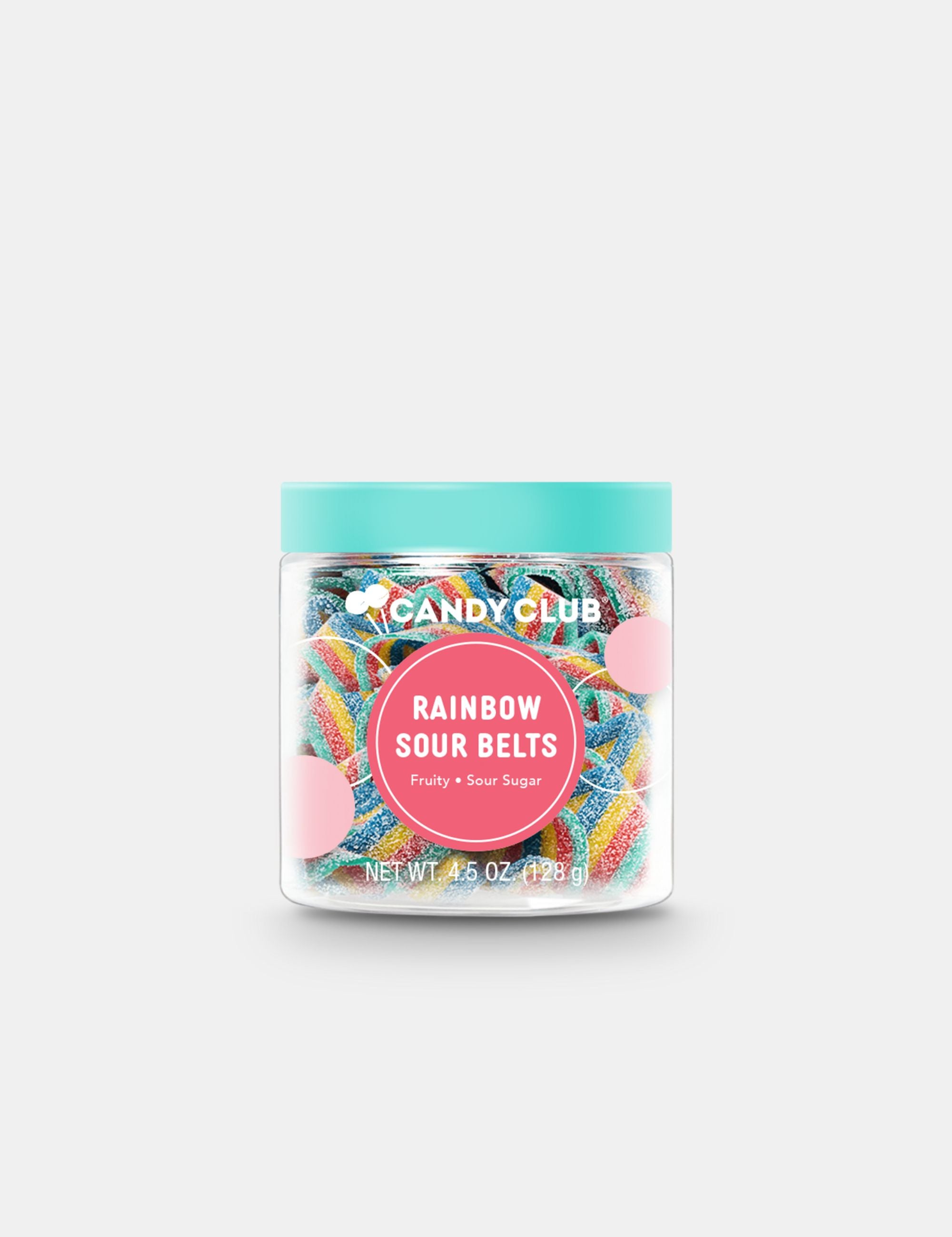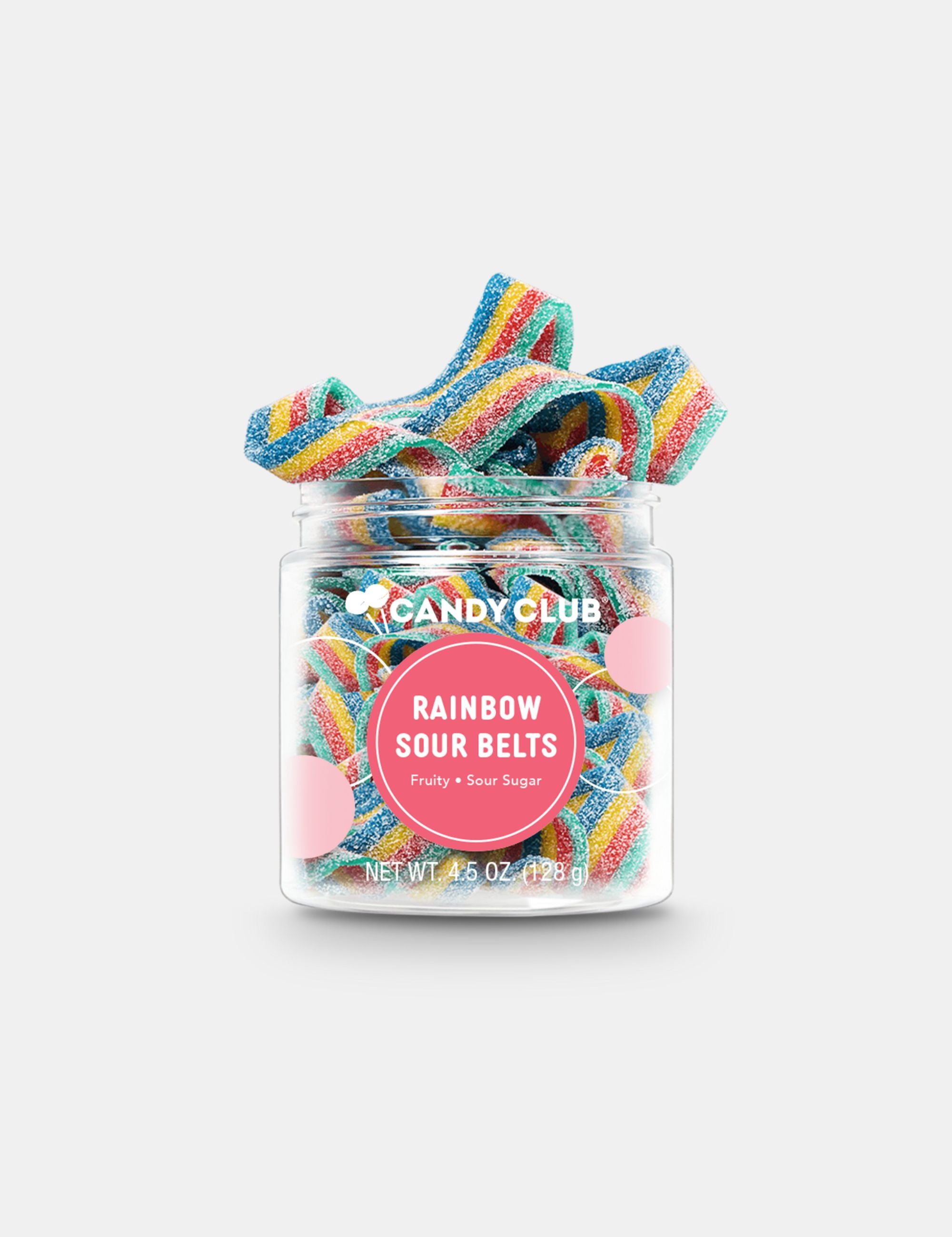 Vibrant, tart rainbow ribbon belts coated in sour sugar—fun, colorful, and sure to make taste buds tingle.